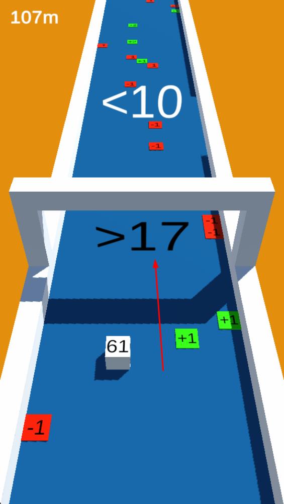 3、合理规划移动路径,多获取增益方块,提升数字,挑战更远距离,完成跑酷目标。