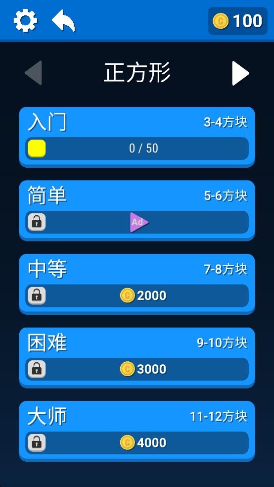 3、关卡主题解锁:完成一类主题的所有基础关卡,可解锁该主题的进阶模式,进阶关卡的方块形状更不规则,部分图案还会隐藏干扰线条,增加解谜趣味。