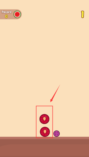 2、向下推动紫色圆形,与底部水果匹配消除。