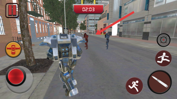 3、需要切换为机器人形态,迎战敌方的机器人,借助左侧攻击键与右侧移动按键,在限时内击败敌人。
