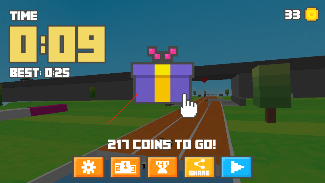 1、复古像素风格:采用方块主题的像素画风,角色设计呆萌可爱,场景跑道充满复古质感,色彩搭配鲜明却不刺眼,营造出怀旧又轻松的视觉氛围,让玩家沉浸在经典像素世界中。