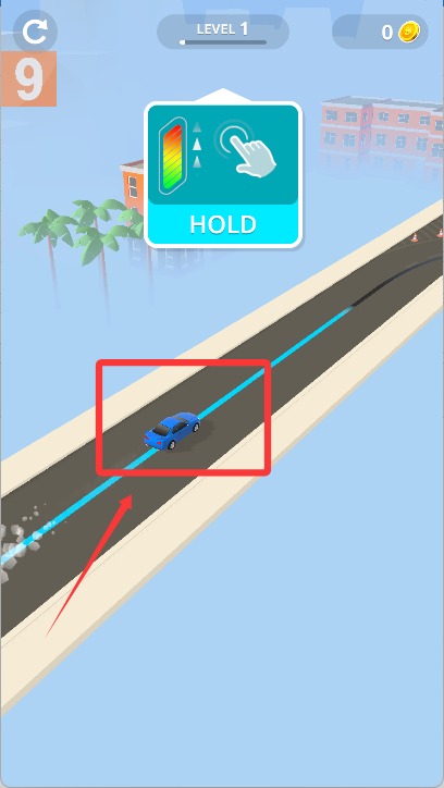 1、进入赛道后,油门自动保持前行,通过左右滑动控制车辆倾斜与漂移,以躲避道路两侧及中间的障碍物,保持高速稳定。