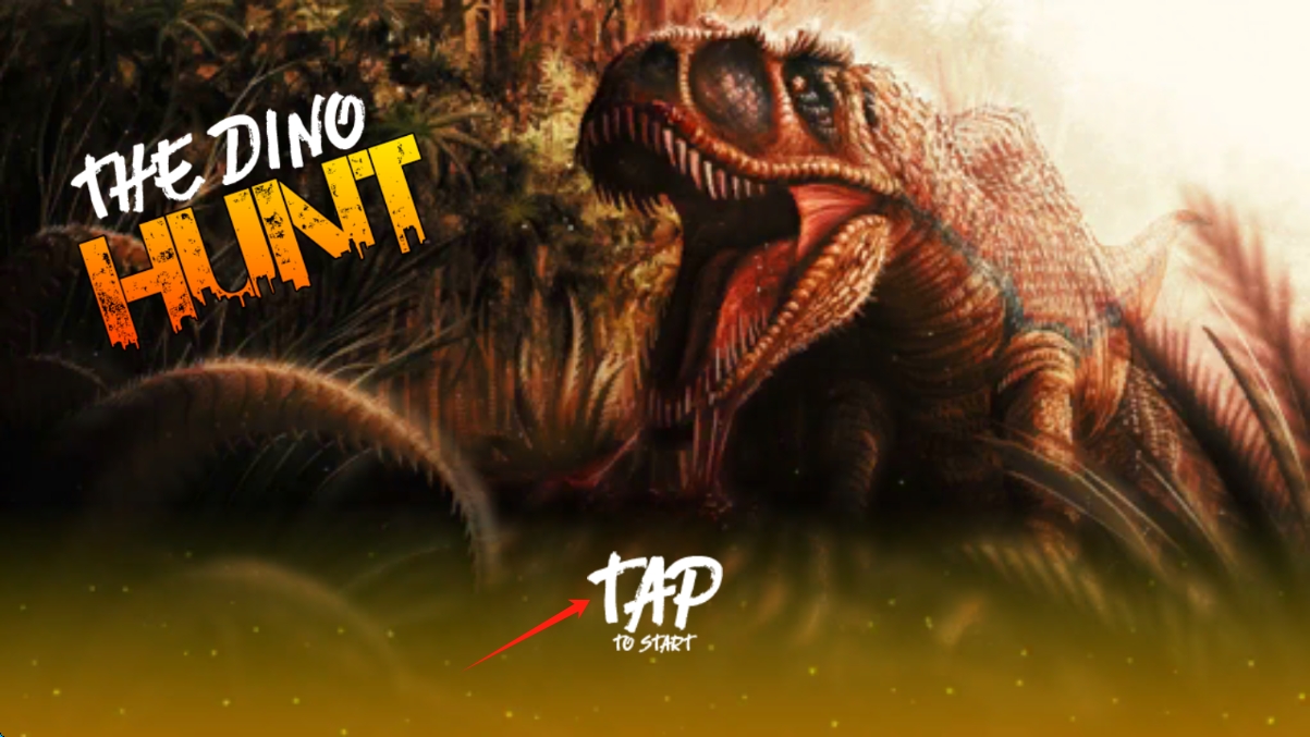1、打开The Dino Hunt,点击TAP进入游戏,开启恐龙狩猎之旅,点击按钮开始游戏。