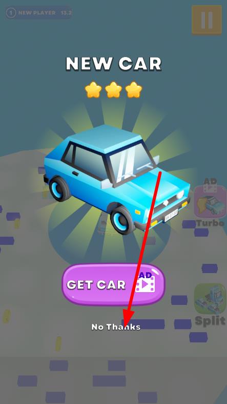 3、当满足一定条件解锁新汽车后,若不想获取新汽车,点击下方“No Thanks”按钮,继续专注当前车辆的竞技挑战。