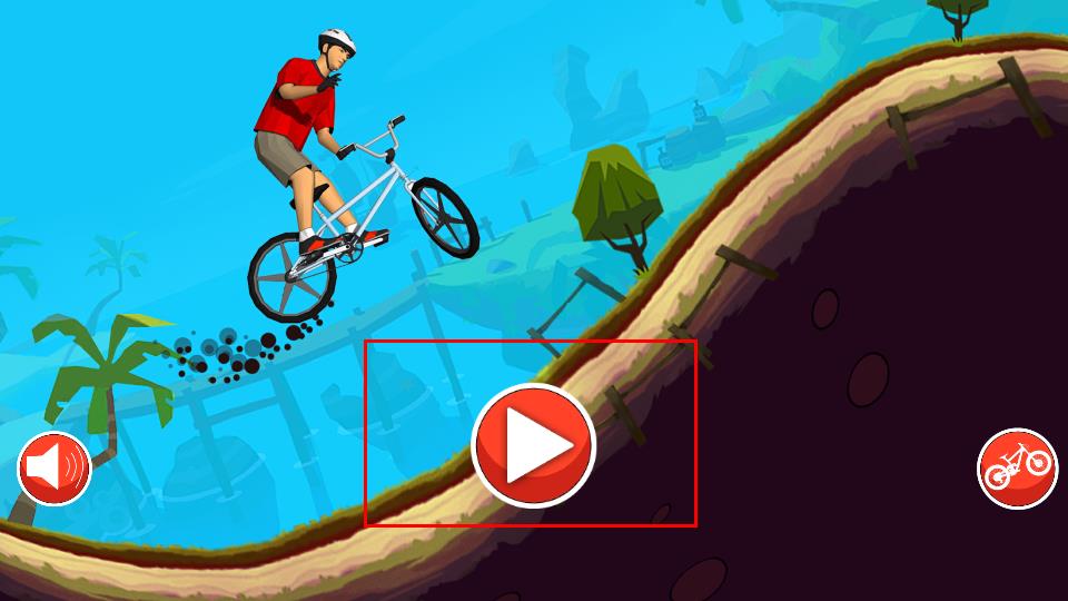 1、下载完成需要进入游戏界面,点击红色播放按钮,开启自行车闯关挑战,正式踏上骑行冒险之路。