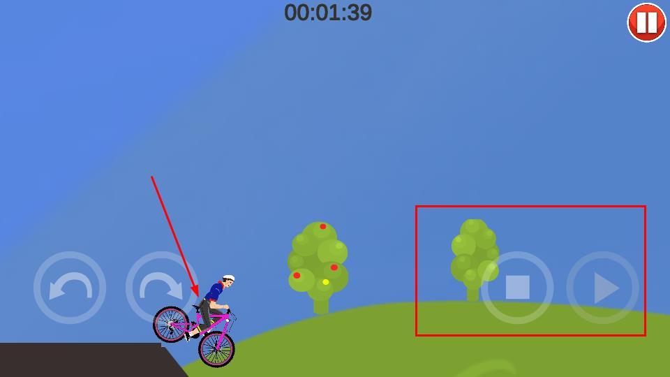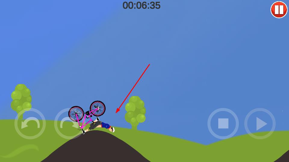 2、在骑行场景利用右侧暂停、播放按钮控制进程,借助左侧重置等按键,应对复杂地形,保持自行车平衡前行。