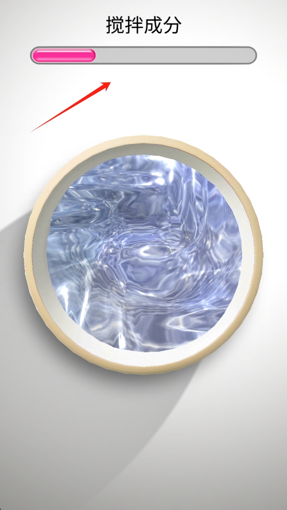 2、将液体倒入容器,准备搅拌,注意液体状态与容器适配,点击屏幕释放液体溶液。