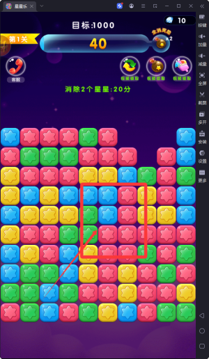 1、玩家通过点击屏幕消除相邻的同色星星,简单直观的操作方式让消除过程变得轻松有趣充满欢乐。