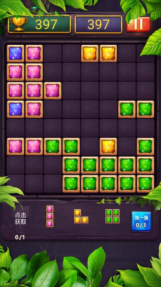 2、然后观察棋盘上的宝石分布,让同色宝石形成三个及以上连续排列,触发消除,逐步积累分数。