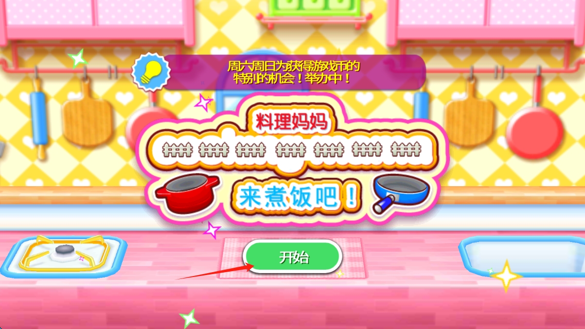 1、打开料理妈妈,点击开始,进入烹饪流程,点击开始的按钮进入到游戏当中。