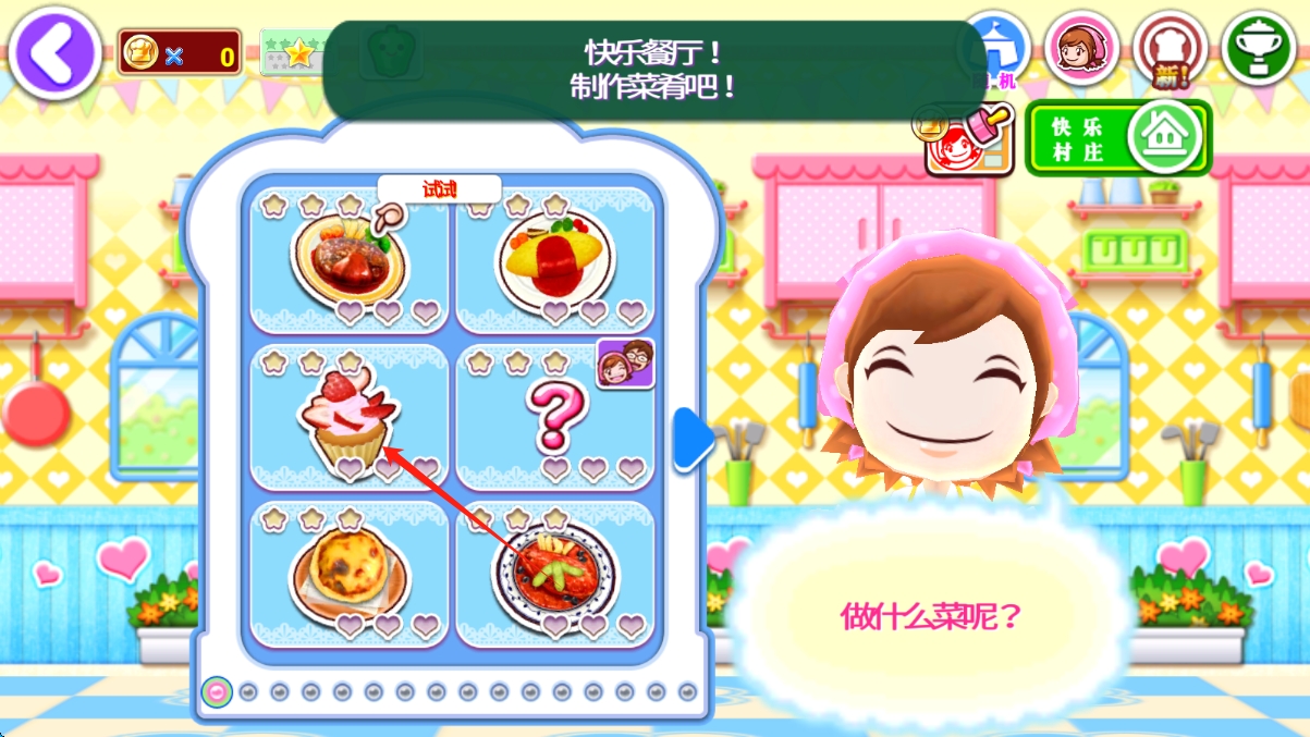 3、选菜谱如蛋糕 ,按步骤切菜、翻炒、调味,完成烹饪获奖励,解锁新菜品,选择菜肴。