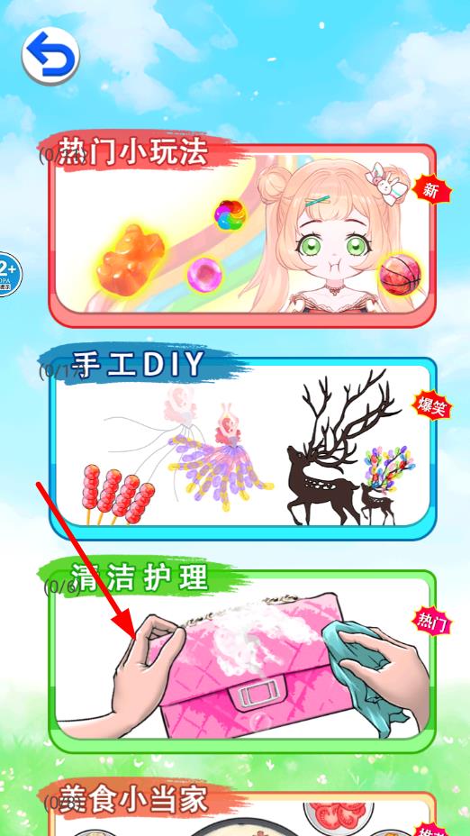 1、进入游戏后选择喜欢的场景,浏览初始的贴纸库,挑选第一张贴纸拖动到场景中合适的位置,熟悉贴纸粘贴与调整的基本操作。