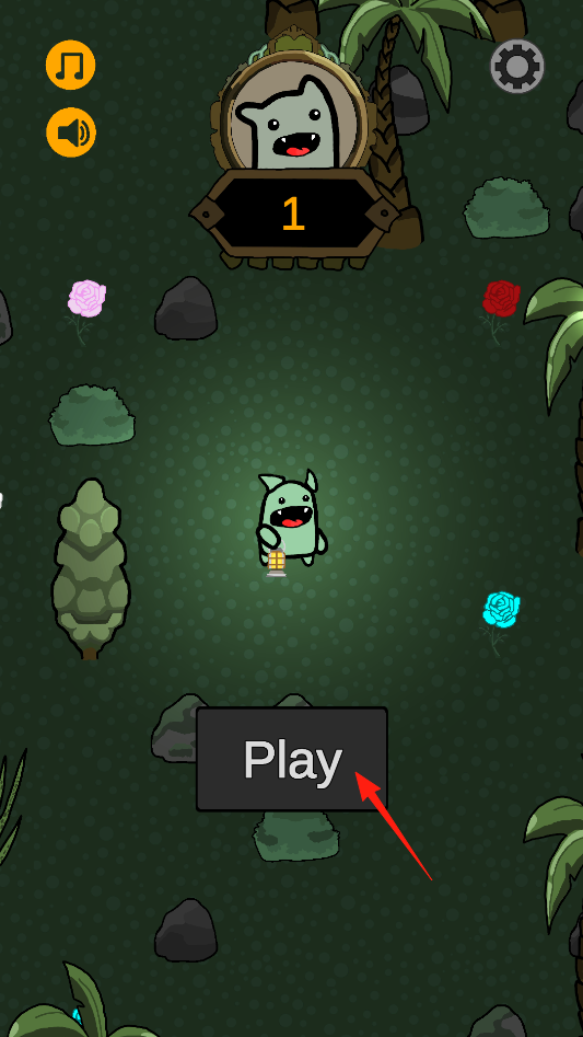 1、进入游戏初始场景,看到Play按钮,点击开始,进入冒险关卡,借助点击启动机制,让角色踏入神秘岛屿,通过操作,开启生存挑战,感受探索未知的乐趣。