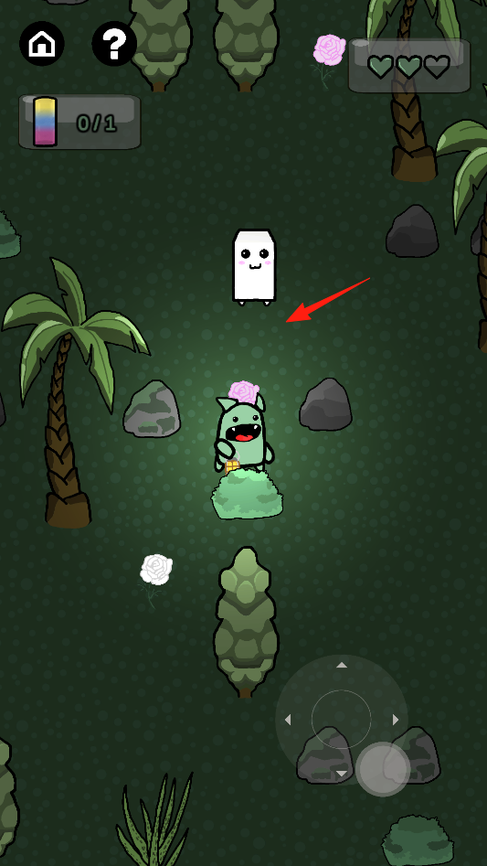 3、在岛屿场景,操控角色移动,靠近白色生物,触发互动,借助场景探索机制,推进任务进程,通过操作,解锁新内容,体验冒险中的随机遭遇,感受探索与互动结合的乐趣。