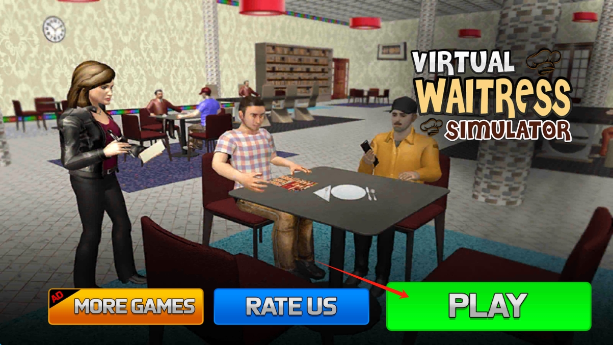 1、打开Virtual Waitress Simulator,点击PLAY,进入关卡选择,点击开始游戏。