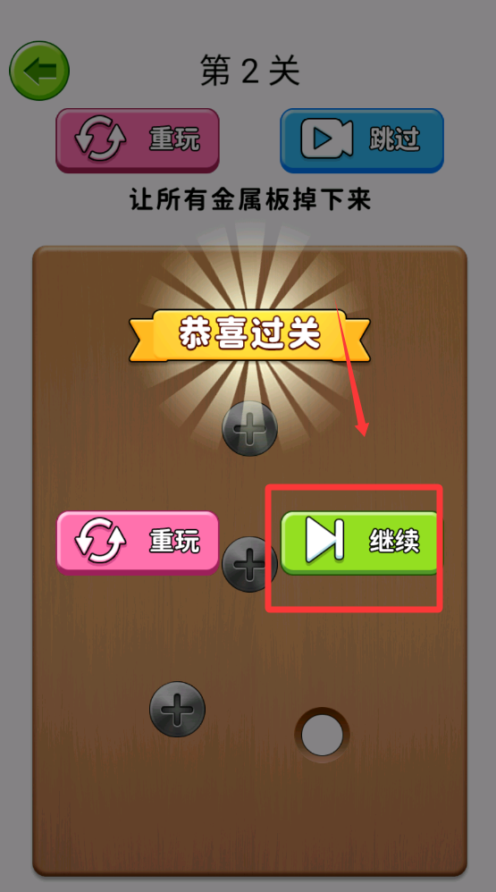 4、通关后点击红色框框的下一关按钮继续挑战。
