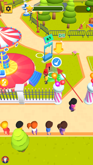 3、进入游戏场景,按游客需求进行操作,如引导游客排队、参与游乐项目等,满足游客需求,积累分数,推进游戏进程。