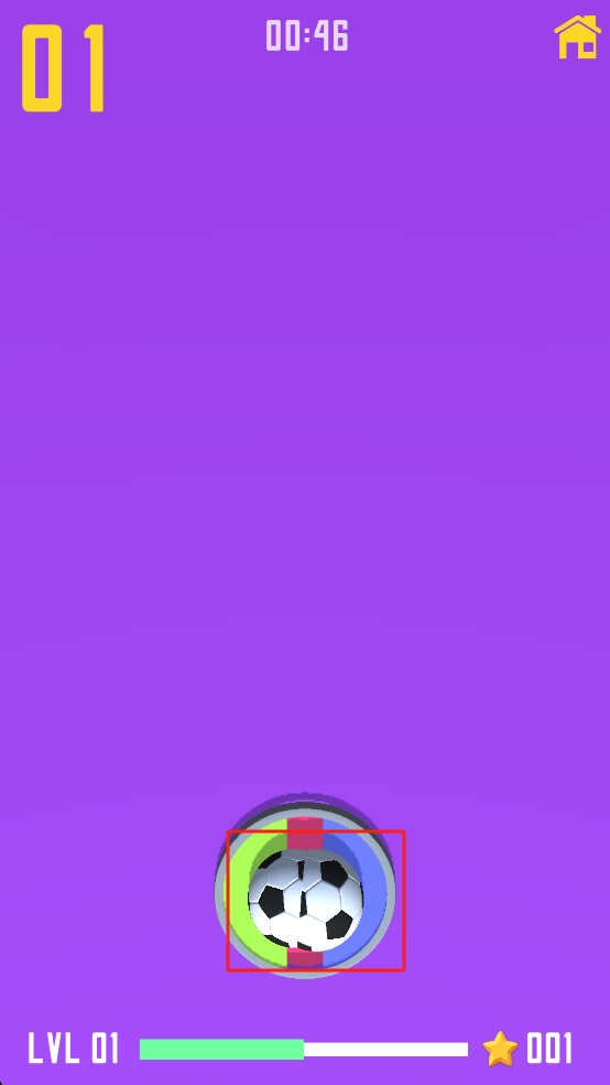 2、待黑白足球进入底部半圆吸附范围,借助颜色匹配完成捕捉,成功后获取星星,提升关卡进度。
