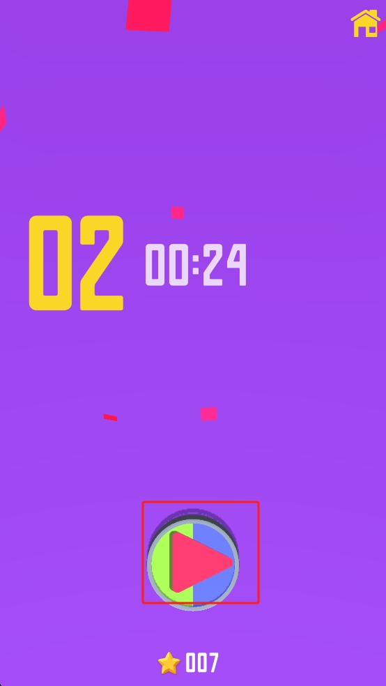 3、关卡01结束后会显示本局的用时,点击底部带红色三角的半圆按钮,进入关卡02,继续通过吸附球类积累分数。