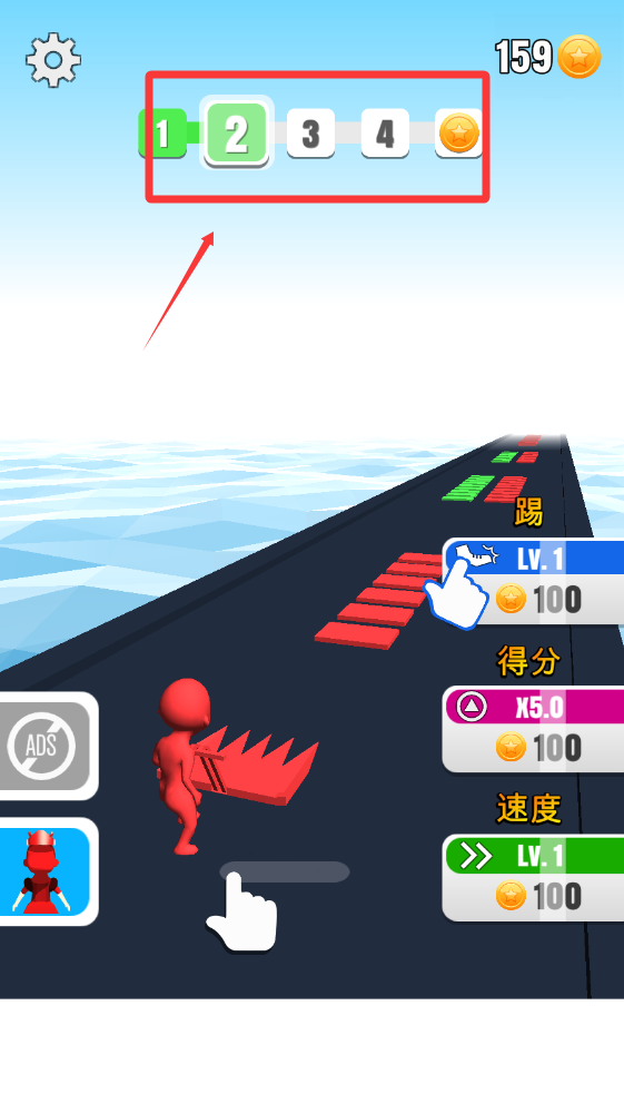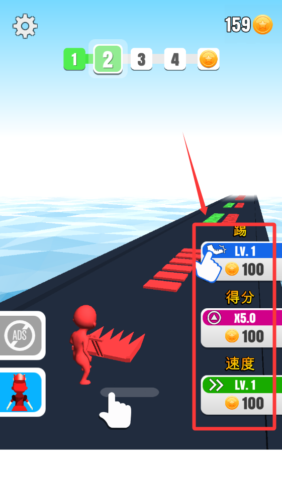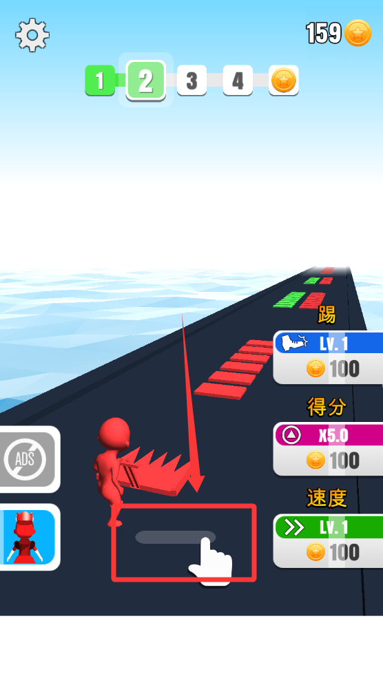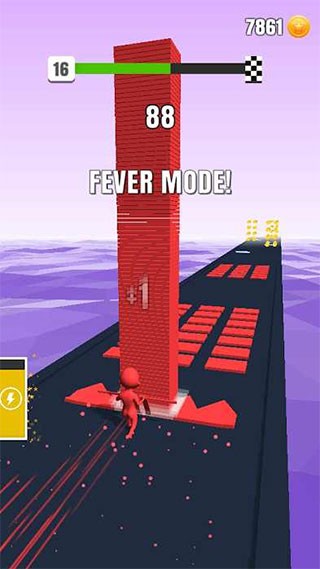 1、基础核心玩法是通过滑动精准控制角色移动路线,收集同色砖块进行稳定堆叠,精准控制移动路线节奏是获得高分的关键要素。