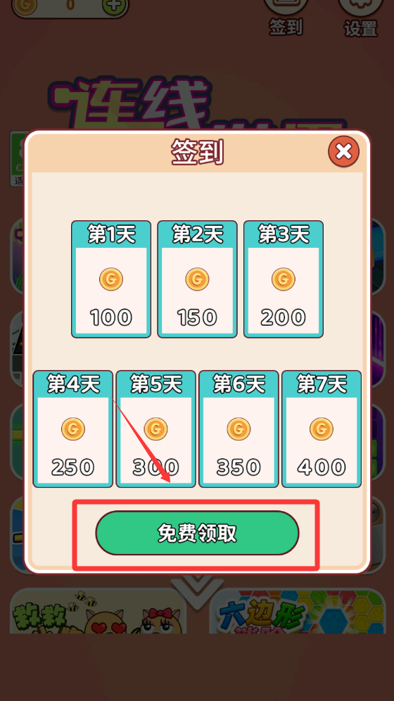 1、点击红色框框的签到免费领取奖励。