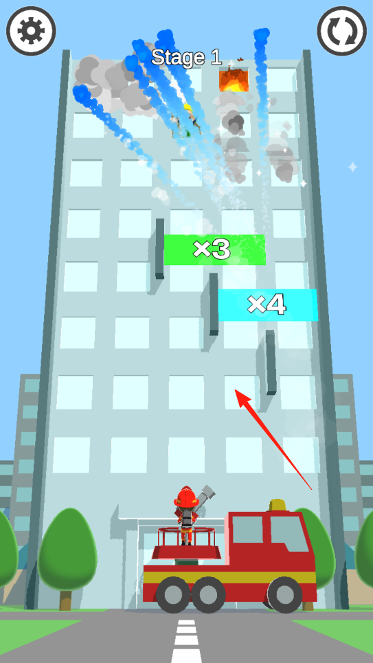 2、在救援过程,观察楼层障碍与被困人员,点击屏幕,发射救援工具,利用弹射机制,跨越楼层,精准施救,通过操作,应对火灾险情,体验策略救援的玩法,感受救援的紧张刺激。