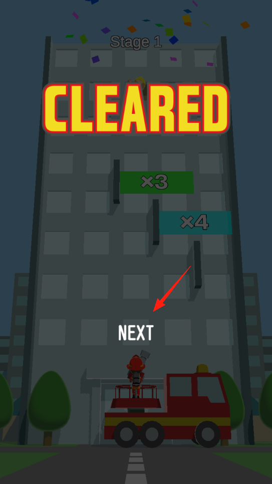 3、完成救援后,进入结算界面,点击NEXT,开启新关卡,借助关卡推进机制,延续救火挑战,通过操作,挑战更复杂火情,感受持续救援的乐趣,积累救援经验。