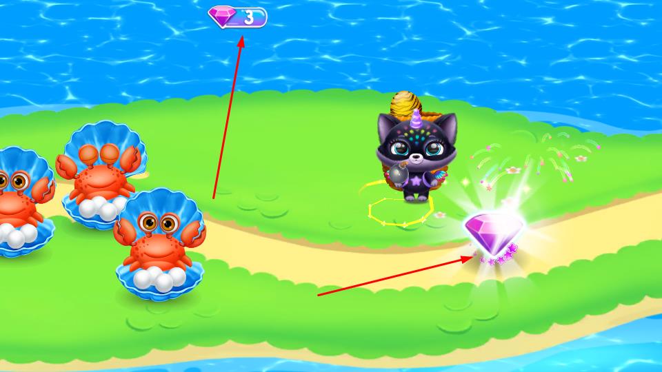 3、带领萌宠探索场景靠近螃蟹、贝壳等互动,收集闪耀宝石,积累资源,解锁更多萌宠装扮与场景玩法。