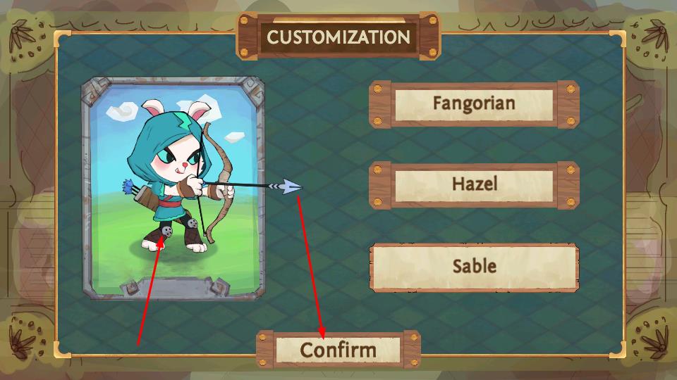 2、在角色定制界面选择Fangorian、Hazel、Sable等角色,点击Confirm确认,给自己打造专属角色。