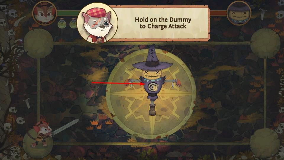3、游戏战斗中,依据提示Hold on the Dummy to Charge Attack,长按稻草人dummy积攒攻击,提升战斗能力。