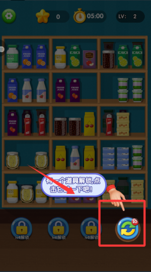 1、开局先观察货柜中物品的分布情况,找到可以形成连消的区域,优先消除能带动周围物品的位置。