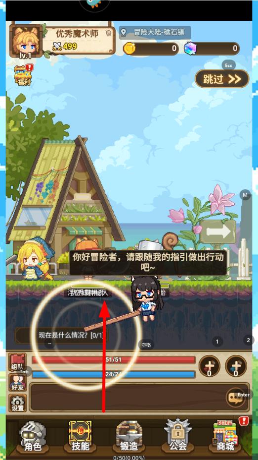 2、冒险途中遭遇小怪时点击攻击键战斗,破解机关谜题获取宝箱,积累资源提升角色的攻击与防御能力。