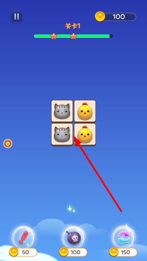 2、在关卡1中,滑动屏幕连接相同图案的方块,成功消除后推进关卡进度,注意合理规划连接路径。