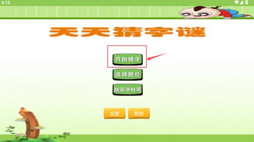 1、点击红框开始猜字按钮,进入字谜游戏主界面。