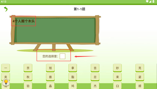 2、阅读红框4个人搬个木头,在下方输入框作答。