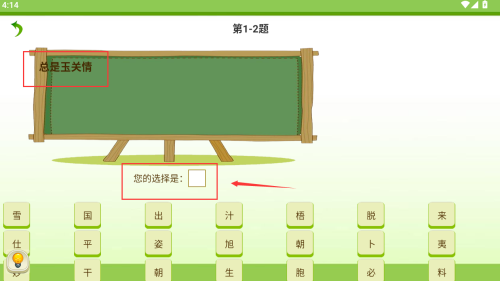 4、根据红框总是玉关情,选择对应汉字完成作答。