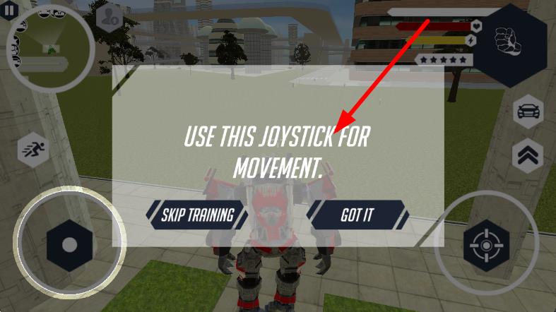 2、进入教学提示,按照指引,通过左侧虚拟摇杆操控机器人移动,点击确认,开启操作练习。