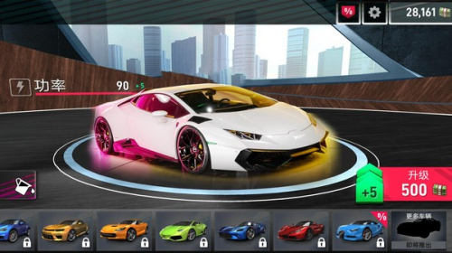 2、车库内陈列多款性能各异的超级跑车,根据当前赛道特性选择最适合的竞速座驾。