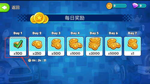 1、每日登录游戏优先领取签到奖励,积累金币与零件资源用于后续车辆升级改装。
