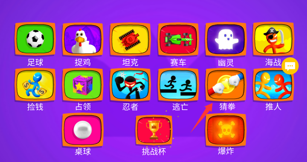 2、这里有15个模式和玩法给大家选,选猜拳玩玩。