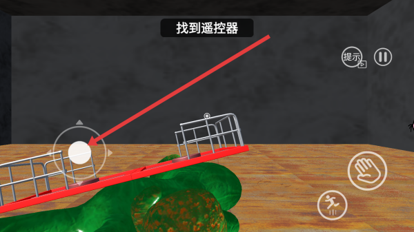 1、通过任务推进,依据上方找到遥控器的提示,找到房间内的机关,像红色跷跷板进行探索,利用左侧的摇杆来移动角色。
