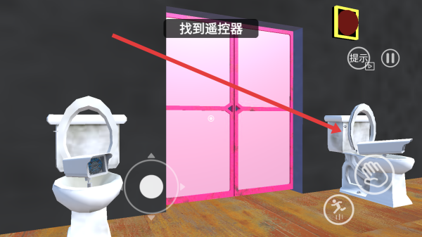 2、在场景进行探索,全面遍历房间的各个区域,包括粉色双开门以及马桶旁边等地方,马桶的水箱处有可能隐藏着道具。