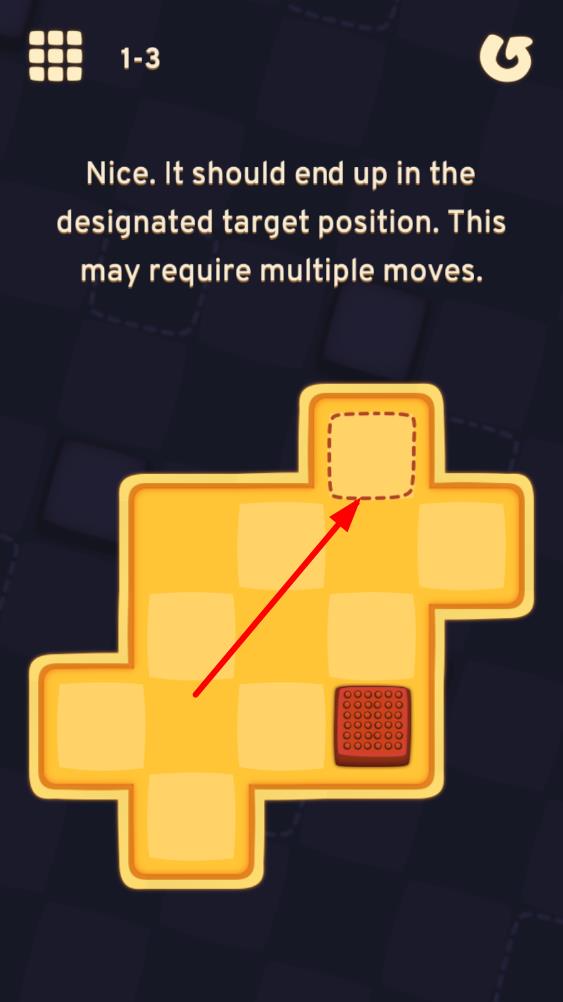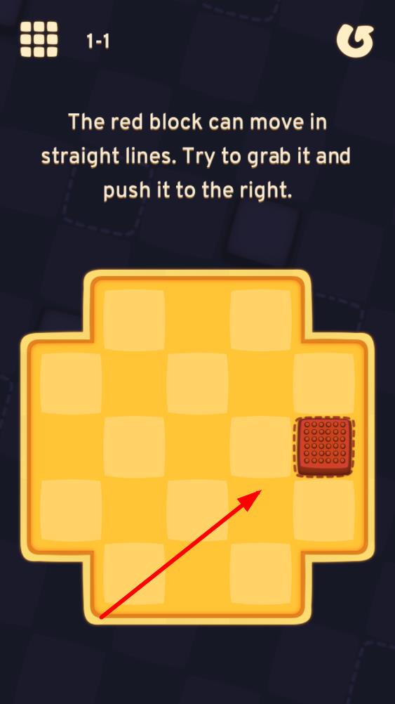 1、进入选择关卡,观察方块与目标虚线框的位置分布,通过滑动屏幕控制方块向指定方向移动。
