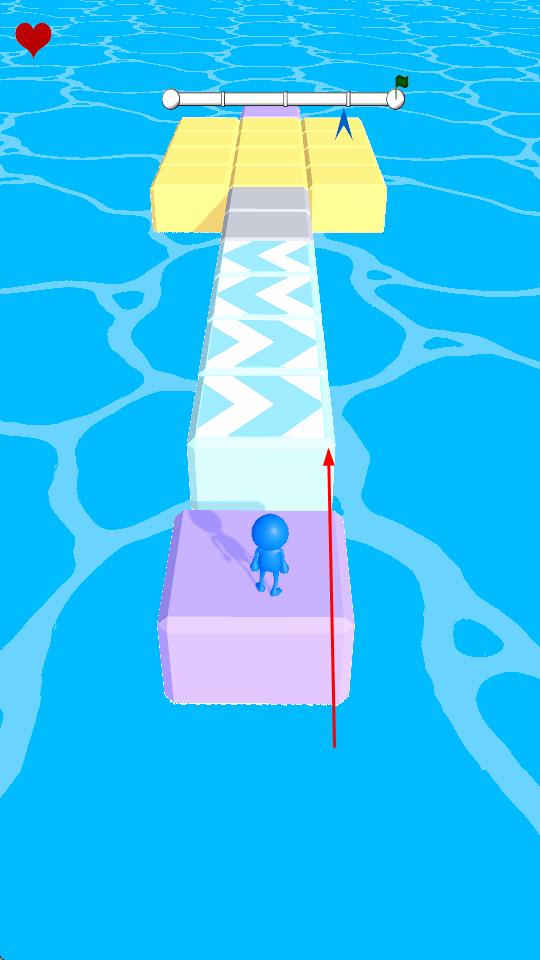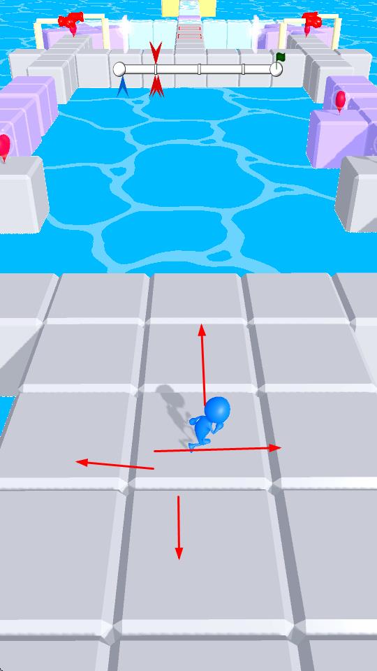 1、进入游戏后,操控蓝色小人在赛道上移动,可向前后左右四个方向行进,灵活应对赛道变化。