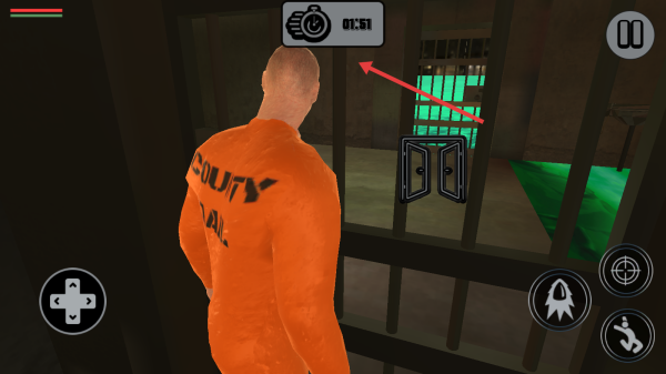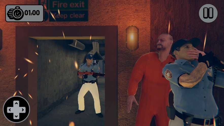 1、潜行躲避操作:通过虚拟摇杆控制角色移动,在狱警巡逻时躲入阴影区域或障碍物后,利用其视野盲区推进,避免被发现触发警报,保障逃脱安全。