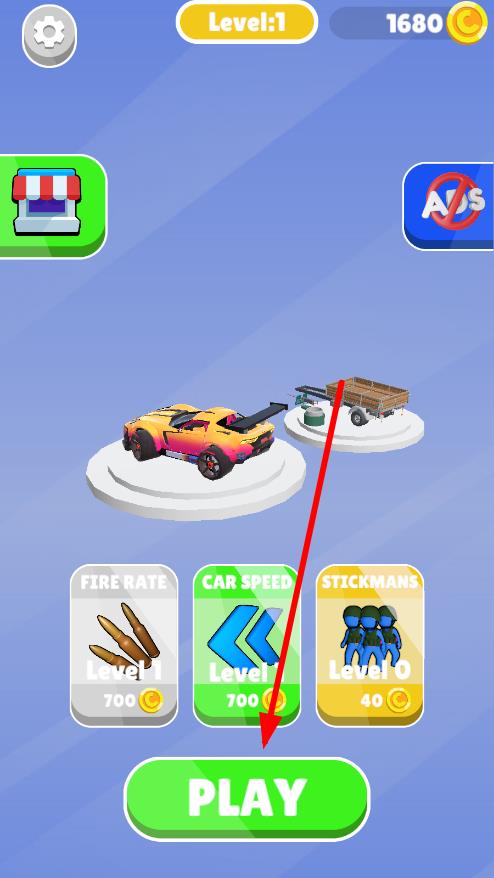 1、赛车养成系统:可升级“FIRE RATE”“CAR SPEED”“STICKMANS”,不同属性提升对应战力,如射速加快可更频攻击对手,养成专属赛车。
