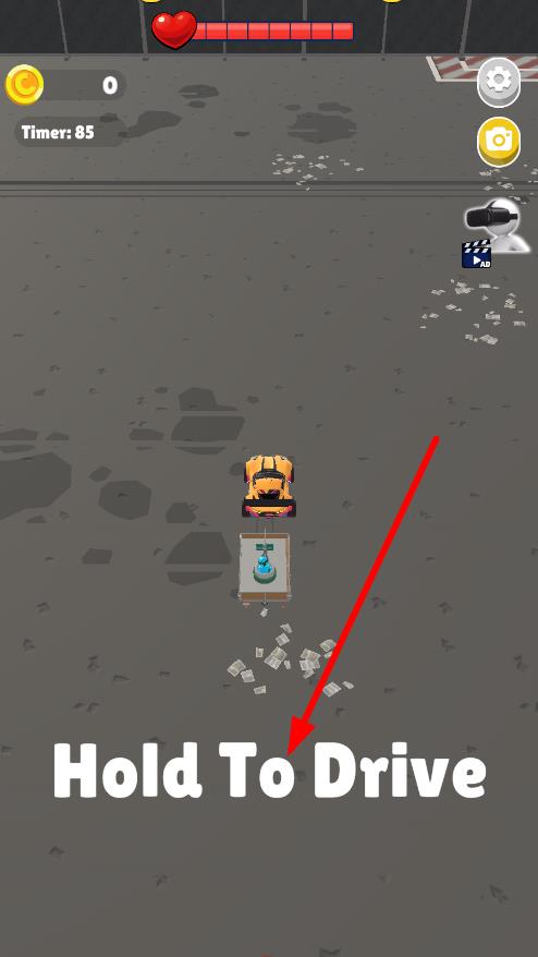 1、在主界面点击“PLAY” 按钮,进入赛道,按住屏幕“Hold To Drive”区域控制赛车行驶,松开可漂移转向,灵活躲避障碍,开启竞速挑战。