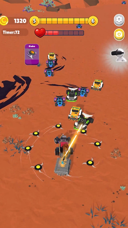 3、轻策略养成:金币有限下,权衡升级属性优先级,是先提升车速抢占先机,还是加射速压制对手,不同养成路线影响闯关体验,增添策略深度。