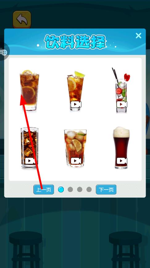 1、进入游戏后在饮品菜单中选择心仪的啤酒或饮料,点击确认后虚拟酒杯自动出现在屏幕中,做好模拟饮酒的准备。