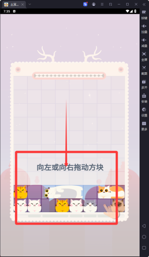 1、玩家需要通过水平滑动屏幕移动猫咪方块,将相同颜色的方块排列在一起填满整行,即可完成消除并获得分数。